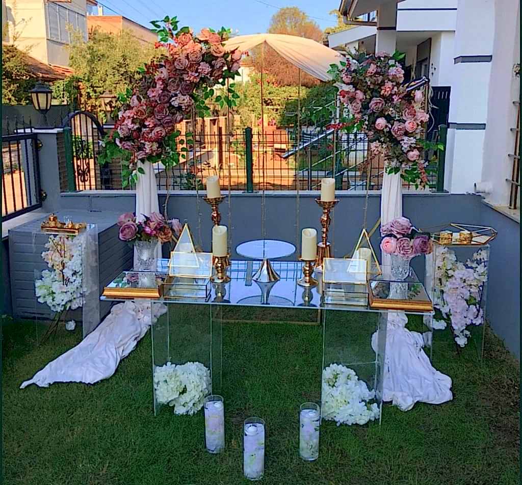 EVDEMİ BAHÇEDEMİ ‘ eger bahçeli bir eviniz var ise neden misafirlerinizi dar bir ev ortamına hapis edesiniz? Nişan Organizasyonu artık tamamen butik bir organizasyon niteligindedir , ev ortamında yada bahçe ortamında yapılan her organizasyon butik organizasyon olarak nitelendirilmektedir. özellikle yaz ayında ev ortamında Nişan Organizasyonu gerçekleştirmek biraz sıkıntılı olmaktadır eger geniş ferah ve klimalı bir eviniz yok ise emin olun zor bir durum olmaktadır. bahçeniz yok ise emin olun böyle güzel bir gün için bahçesi olan bir akrabanız yada arkadaşınız sizi kırmayacaktır buda sizin için bir fikir nitelindedir ( bizce düşünmeye deger ) Nişan Masası Süslemeleri konusunda bahçe ortamında yapılan organizasyonlarda emin olun her süsleme kendini çok fazla şık göstermektedir geniş ortamın ferahlıgı yeşil ile tamamlandıgında emin olun herşey daha cezbedici olmaktadır. Nişan Organizasyonu Fiyatları ‘ bu durum tamamen yapılacak süslemelerin yogunluguna ve kullanılacak malzemelerin cinslerine göre belirlenmektedir. eskiden Evde Nişan Organizasyonu işlerimizde belirli bir fiyat aralıkları verebilmekteydik fakat ürünlerin çogalması ile birlikte müşterilerimizin taleğleride çogalmış durumdadır bu nedenle Bahçede Nişan için bizleri mutlaka arayarak fiyat alınız. Tanya Organizasyon web sitemizden Whatsapp hizmetimizde bulunmaktadır oradan da müşteri temsilcimizle yazarak görüşme imkanınız bulunmaktadır. Nişan Masası için seçimlerinizi mutlaka elbise rengine göre karar veriniz bunu yazmamızın sebebi bazı Nişan Organizasyon’larında gözlemlemekteyiz ki ‘ elbise renkleri istenilen Nişan Konsepti’ne tamamen zıt renkler olmaktadır bu nedenle buna dikkat etmenizi önermekteyiz.