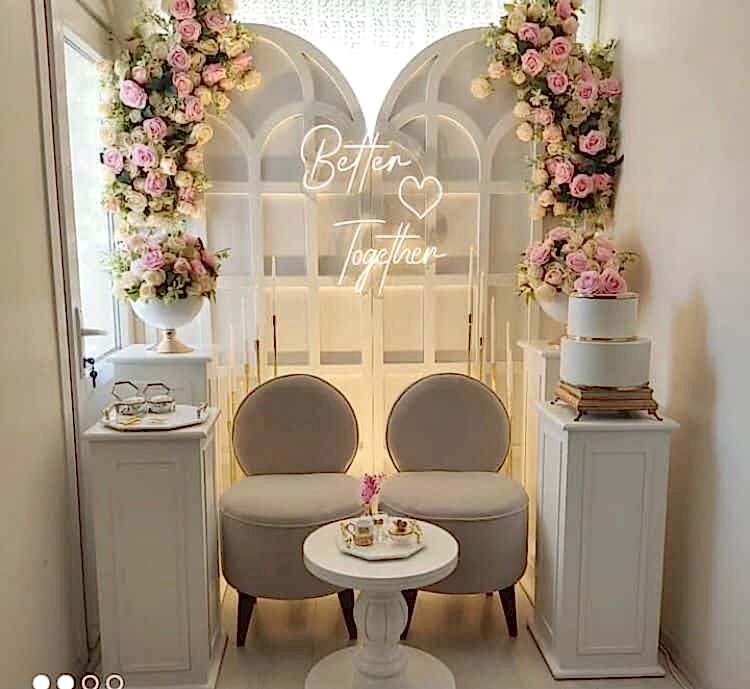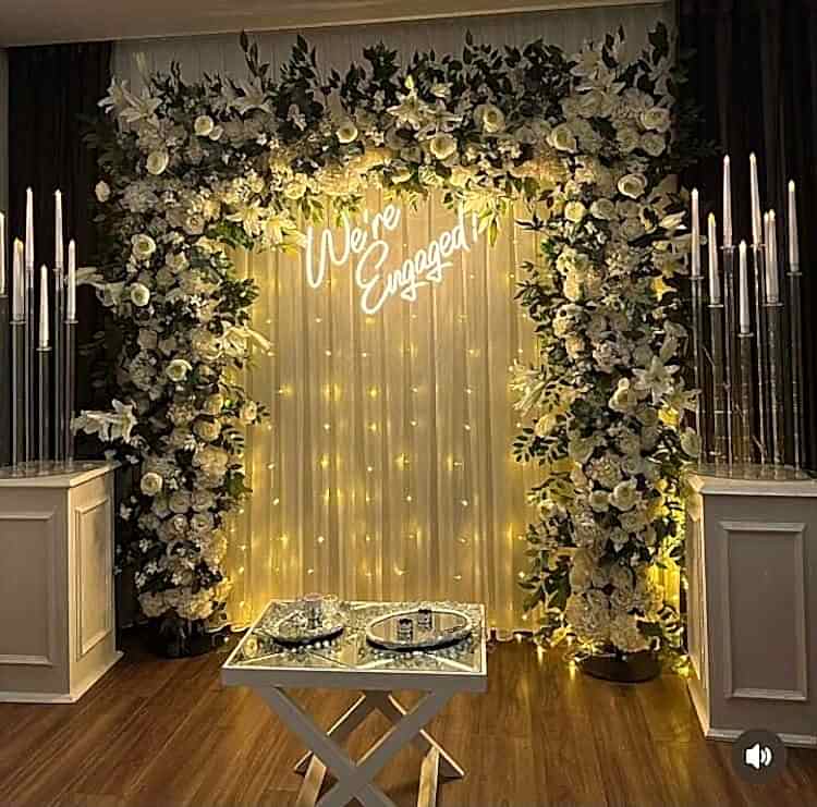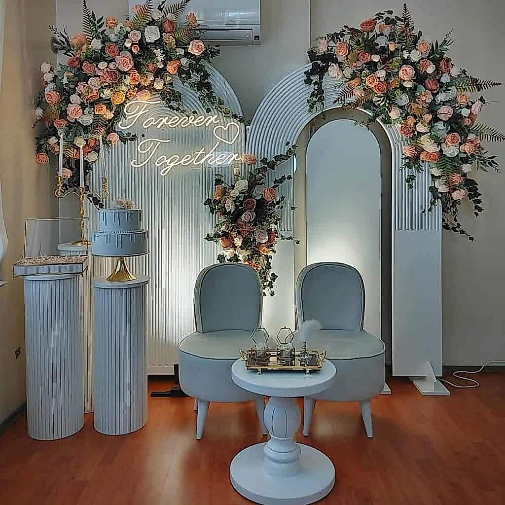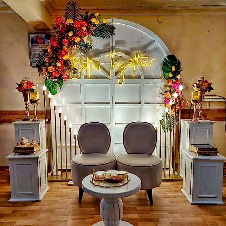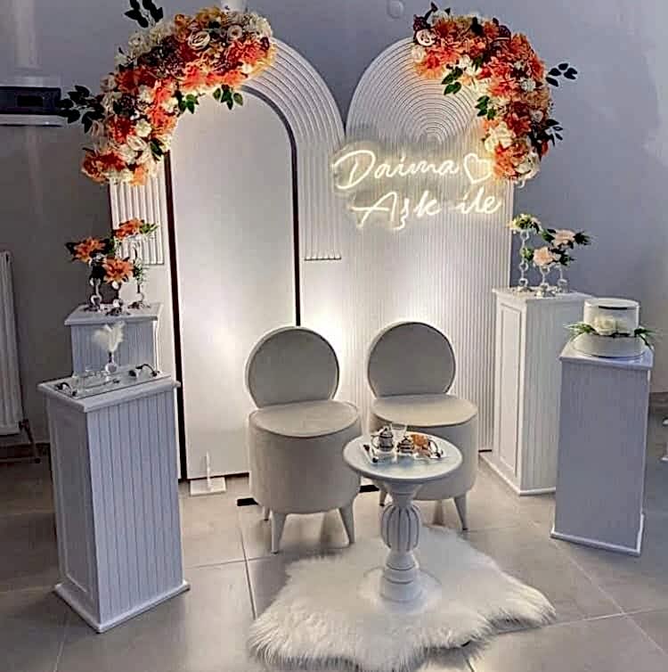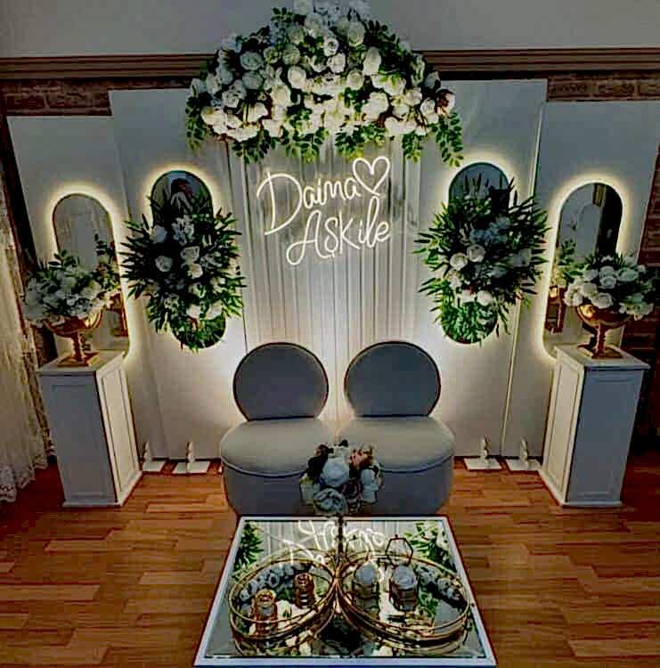 3. Seyirlikler ve Çiçekler: Nişan organizasyonu için seyirlikler ve çiçekler kullanmak, mekanın atmosferini daha canlı hale getirebilir.